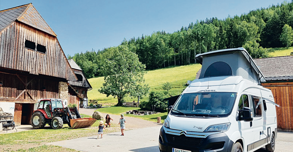 Sanften Tourismus und nachhaltige Landwirt- schaft bringt die App „Schau auf’s Land“ zusammen. Mehr als 250 heimische Bio-Bauernhöfe stellen den Nutzern der Plattform gratis Stellplätze für eine Nacht zur Verfügung. Hier finden Familien österreichweit Naturidylle und nicht selten auch Tiere direkt am Stellplatz. Die Währung des Geschäftsmodells heißt „Wertschätzung“, wie Co-Gründer Christian Gruber-Steffner sagt oder etwas klarer: „Ein Einkauf im Hofladen ist natürlich durchaus erwünscht“.