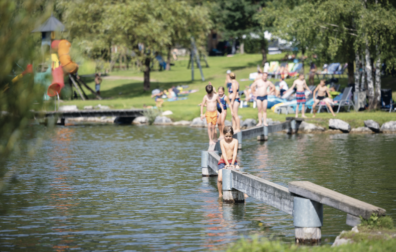 Spiel, Spaß und Bewegung stehen im Wolferlgut auf dem Programm. Der Badesee liegt idyllisch inmitten der Salzburger Alpenlandschaft, gleich daneben – eingebettet zwischen See und Kneippbach – sorgt ein schöner Niederseilgarten für Balancierspaß. Das abwechslungsreiche Aktivprogramm für Kinder sorgt darüber hinaus für beste Unterhaltung. Im Angebot finden sich etwa eine Zaubershow, eine Kinderolympiade und natürlich hohe Sprünge auf dem Trampolin.