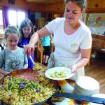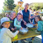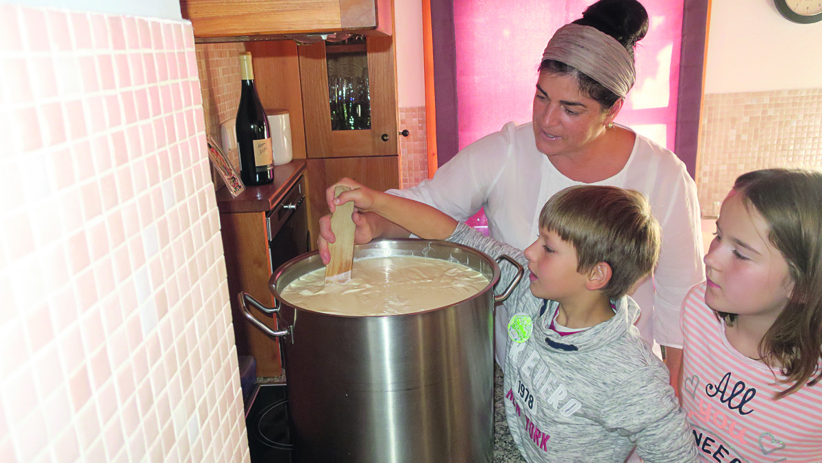 Am Dienstag steht schon die erste Erlebniswerkstatt am Programm: „Von der Milch – so ein Topfen, so ein Käse!“. Bei der Bäuerin Tini in der Küche dürfen alle Kinder mithelfen, einen großen Topf Milch zu Käse zu verarbeiten. Wie das genau geht, wissen wir danach alle – wir haben es ja selber erlebt!