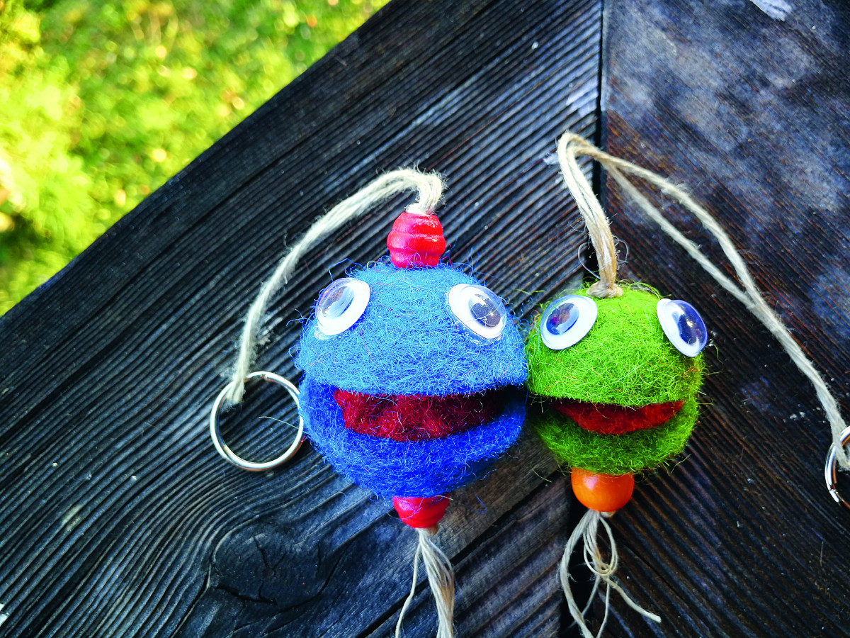 Am Nachmittag steht die Kreativwerkstatt am Programm. Was man aus Schafwolle alles machen kann, das sehen wir beim Filzen. Aus bunten Filzkugeln basteln wir tolle Schlüsselanhänger als Souvenir.