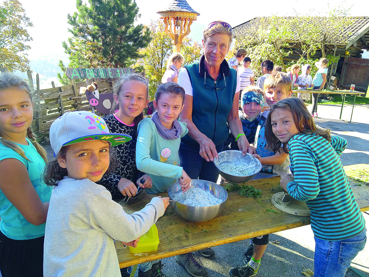 In der Erlebniswerkstatt „Grün, frisch, wild“ erzählt Lous am Mittwoch bei einem kleinen Spaziergang von Kräutern, die rund um die Alpenschule wachsen. Mit dem Topfen, den uns die Milchbäuerin mitgegeben hat, rühren wir uns unterwegs einen superguten Wildkräuteraufstrich an. Außerdem können wir bei der Alpenschule die Kräuter schneiden und fein hacken, mit Salz mischen und abfüllen. So kann jeder den Duft der Alpenschul-Wiesen als Kräutersalz mit nach Hause nehmen.