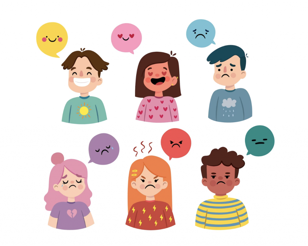 (Ich bin jetzt echt wütend. Ich habe solche Angst. Ich freue mich. Ich bin heute traurig.) - Gefühle anderer erkennen können, sich in andere hineinversetzen können (Wie würdest du dich fühlen, wenn du niemals zum Schaukeln drankommst oder die anderen dich ausschließen? ) = Fähigkeit zur Empathie