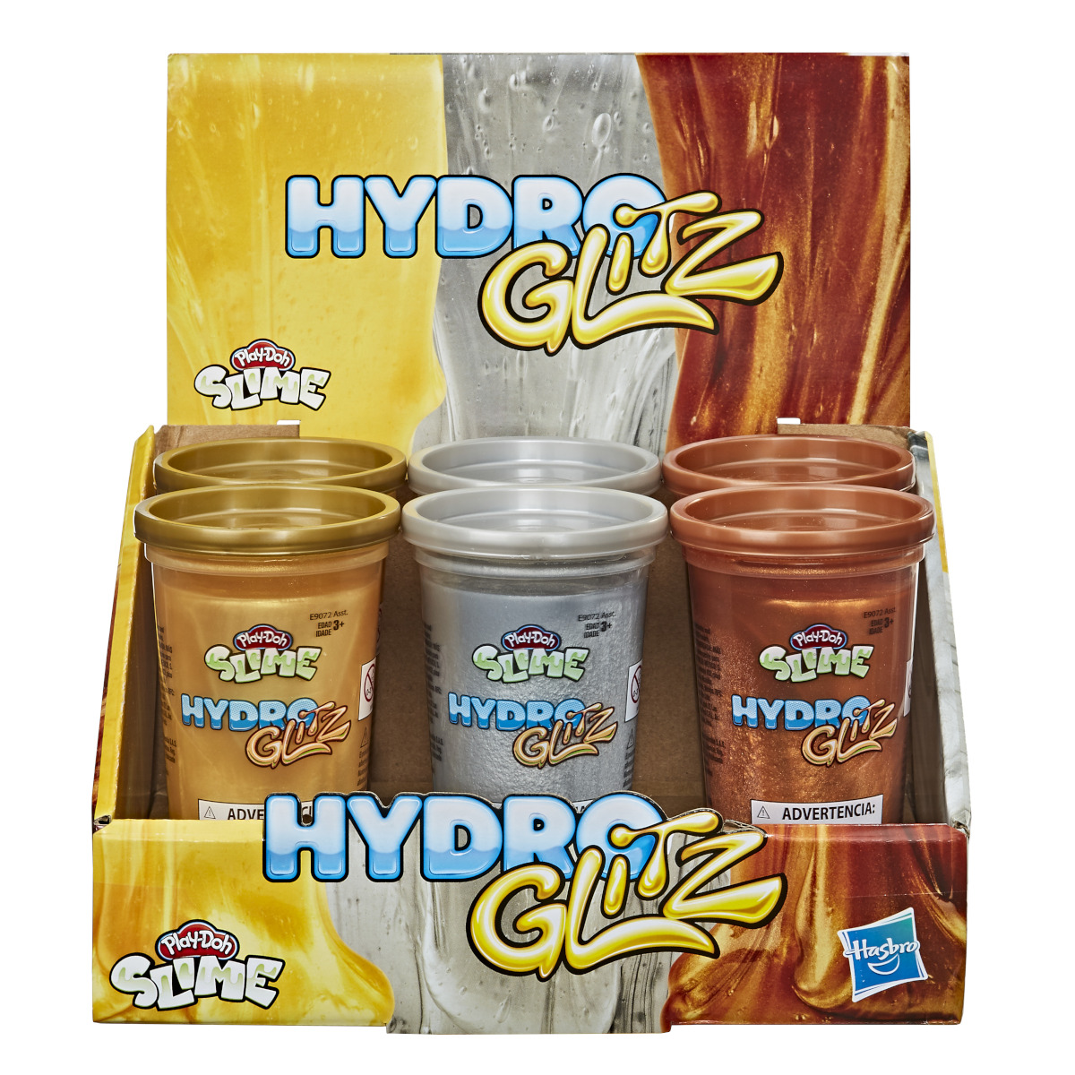 Der metallisch glänzende Play-Doh HydroGlitz Slime ist besonders glitschig und geschmeidig – er lässt sich ganz toll von einer in die andere Hand fließen.