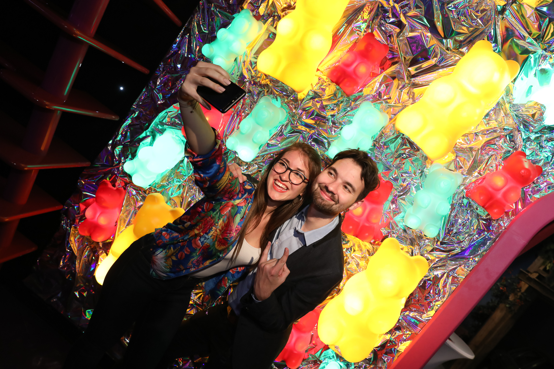 Wer bei so viel süßer Dekoration selbst Lust auf Süßes bekommen hat, findet an der „Naschkatzen“-Bar eine große Auswahl an Süßigkeiten und Candy. Ein überdimensionaler Donut bildet den krönenden Abschluss der ‚Pop-Up Selfie-Factory‘.