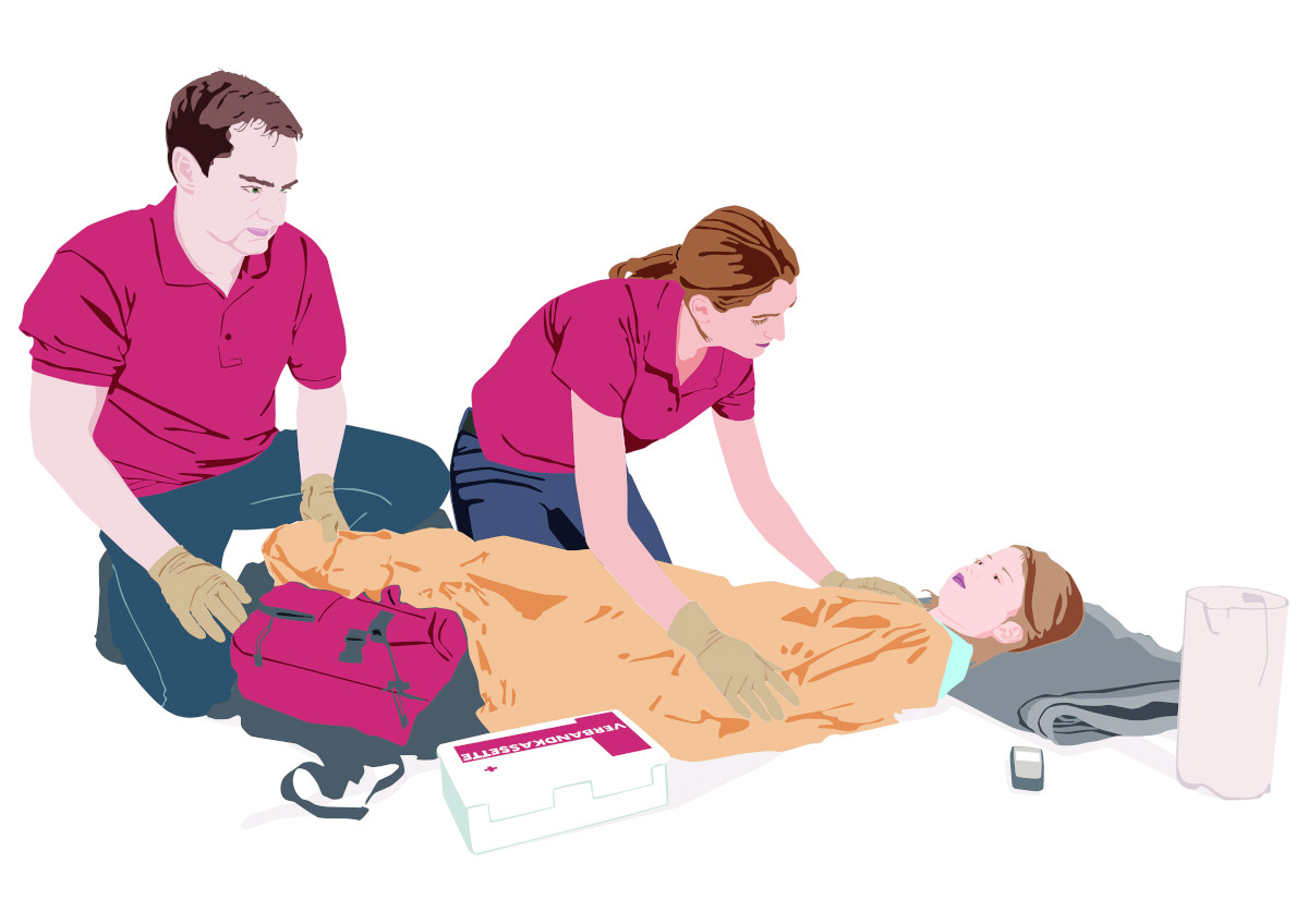 • Geben Sie bei der Erstversorgung keine Salben oder Puder auf die Wunde.