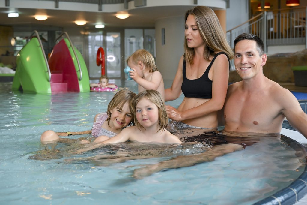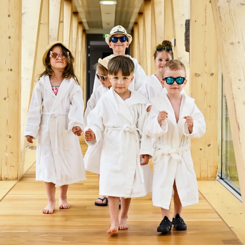 Die 122 stilvollen Zimmer und Suiten in den Designlinien Birke und Walnuss schaffen ein behagliches, modernes Ambiente, das sowohl Rückzug als auch gemeinsames Beisammensein ermöglicht. Warme Farben, hochwertige Materialien und durchdachte Details sorgen dafür, dass sich Familien rasch zuhause fühlen. Als besonderes Plus genießen Hotelgäste den exklusiven Zugang zum Hotel-Spa mit wohltuenden Thermalinnen- und Außenbecken sowie einer eigenen Saunawelt – ein Ort, an dem Entspannung leichtfällt.