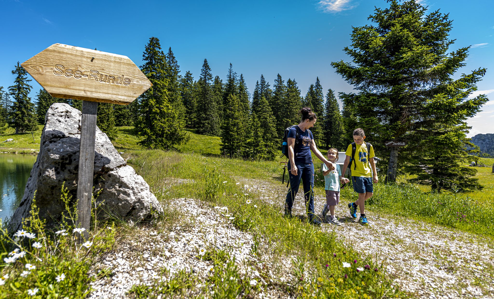 Ausgangspunkt ist das malerisch gelegene Hochberghaus auf 1.200 m. Von hier starten zwei Wanderrouten mit zauberhaften Rätselstationen: Eine kürzere Runde für Familien mit kleineren Kindern sowie eine größere Runde für wanderfreudige Familien mit Gipfelzielen.