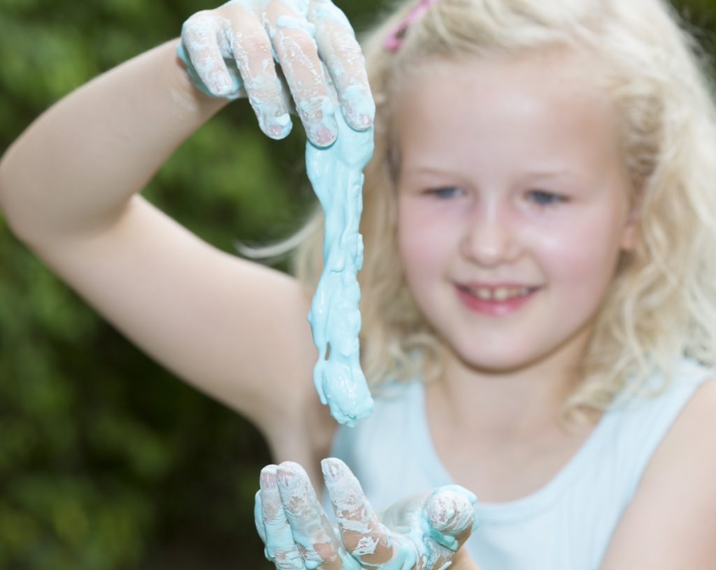 Ihr mögt es gerne etwas schleimig? Habt ihr Speisestärke daheim? Dann braucht ihr nur mehr etwas Wasser und eventuell Lebensmittelfarbe, schon kann es losgehen.