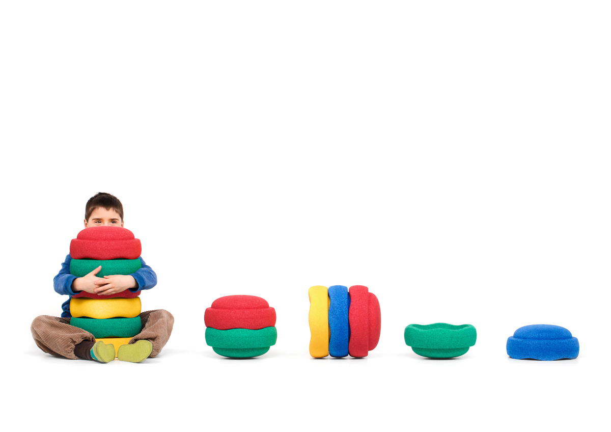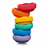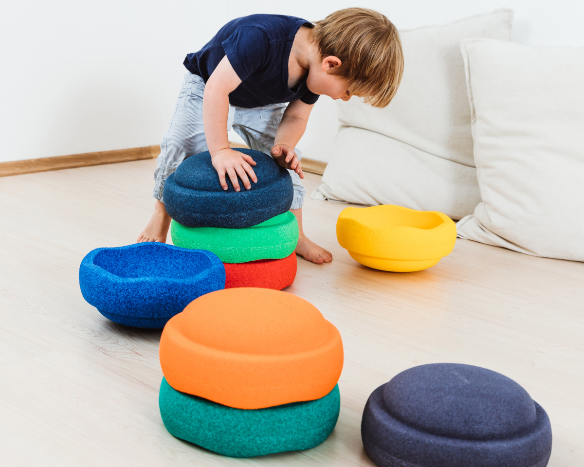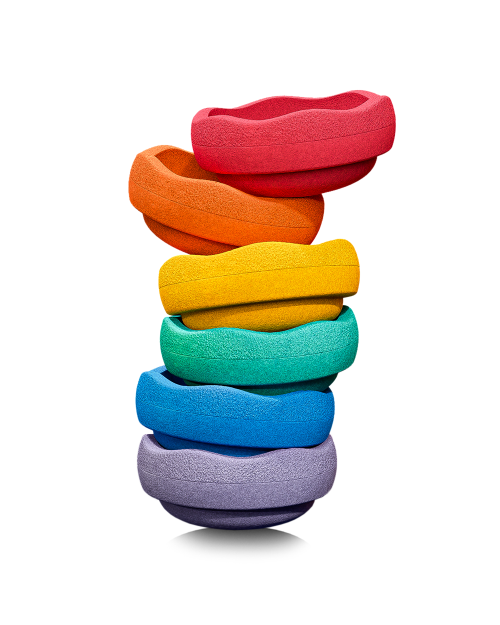 Die Stapelsteine lassen sich nach Lust und Laune stapeln, auflegen, in (Rollen-)Spiele einbinden – und sorgen durch das robuste Material lange für Freude und Bewegung.