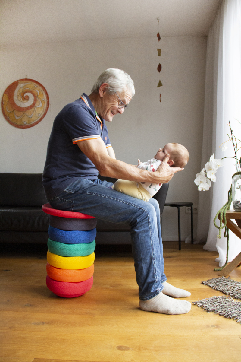 Ein Stapelstein wiegt nur 180 Gramm und bietet damit auch schon den Jüngsten tolle Spieloptionen: Rollen, stapeln, balancieren, sortieren oder transportieren sind nur einige davon. Auch Rollenspiele erfinden die Kinder meist im Handumdrehen und schaffen sich neue Fantasiewelten. Dann wir das Zimmer zum Beispiel zum Bach, in dem von Stein zu Stein gesprungen werden muss, oder die Stapelsteine fungieren als Hüte, Lenkrad, Hocker, Türme oder Schüsseln.