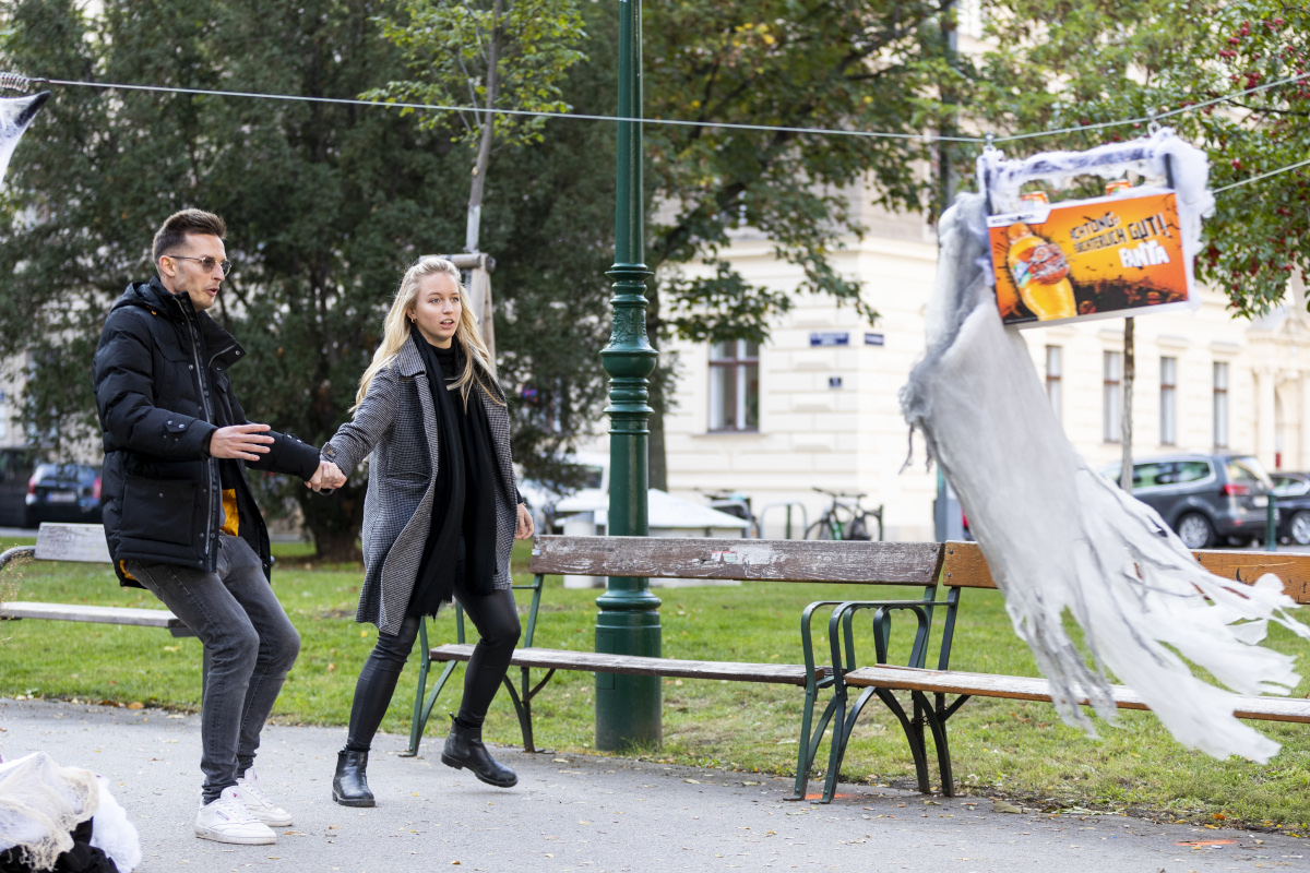 Ort des Geschehens: der Votivpark in Wien. Die Stimmung ist gespenstisch, schauriges Gelächter und geisterhafte Klänge sind zu hören. Plötzlich huscht ein Gespenst über den Weg. Ahnungslose Passanten erschrecken, zucken zusammen oder weichen aus. Auf den Schrecken folgt gleich die Erleichterung: Was ihnen da über den Weg geflattert ist, ist das Fanta Halloween-Gespenst – mit im Gepäck hat es fruchtig-erfrischende Fanta Orange in der Halloween Limited Edition, die sich die erschreckten Passanten nun mitnehmen dürfen.
