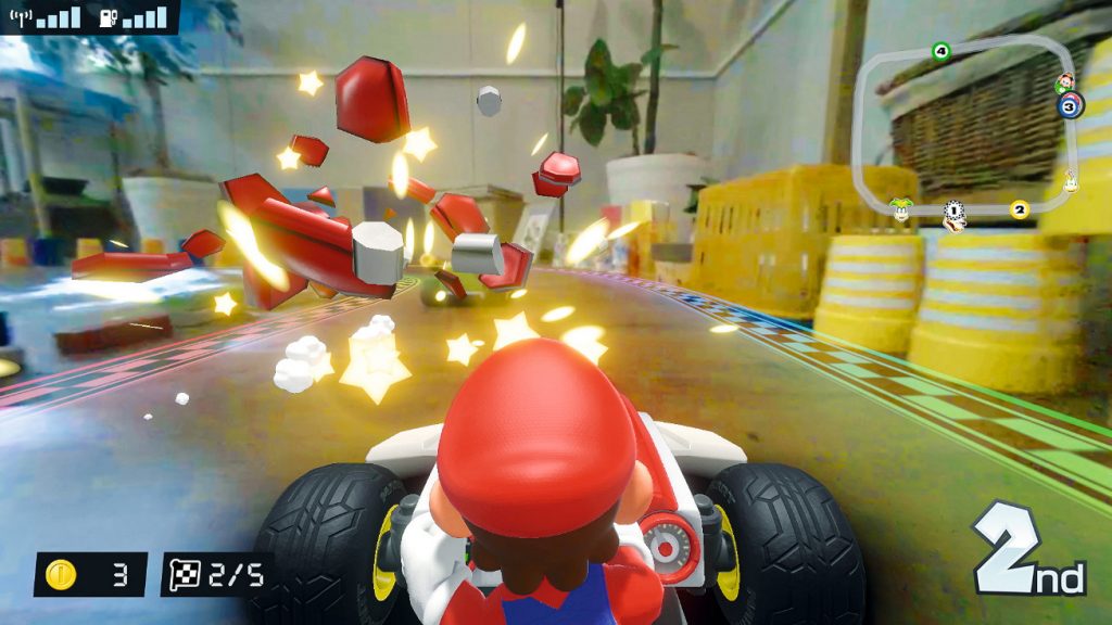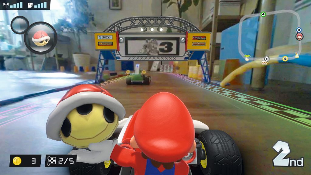 Was ist noch lässiger als Mario Kart auf der Switch? Wenn der Kultheld mit seinem roten Flitzer buchstäblich durch euer Kinderzimmer rast! Oder durchs Wohnzimmer, das Vorzimmer, die Küche …