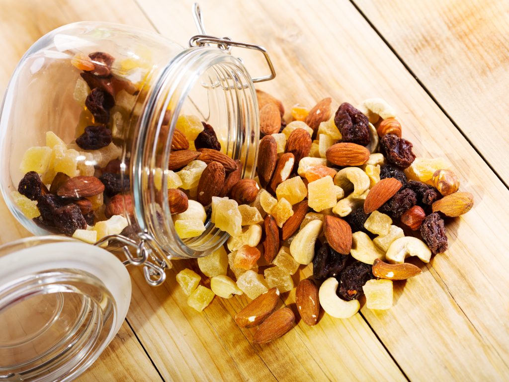 3. Die getrockneten Früchte mit den Nüssen vermengen und in einem verschließbaren Glas kühl und unbedingt trocken aufbewahren.