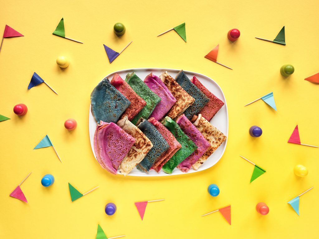 Sie können grüne und orange Pfannkuchen ebenfalls ganz einfach zaubern, indem Sie den Rote-Bete-Saft durch folgende Zutaten ersetzen: 2 EL Spinatpüree und 1 Prise Muskat für den grünen Teig sowie 2 EL geriebene Möhren und 1 Prise Curry für den orangen Teig.