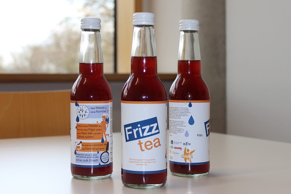Daher wurde gemeinsam mit Jugendlichen ein Getränk auf Teebasis als Kommunikationsmittel entwickelt, das am Etikett in jugendgerechter Sprache Informationen zu gesundem Trinkverhalten bietet. Die zielgruppenorientierte Gestaltung des Etiketts erleichtert den Jugendlichen den Zugang zur Ernährungsinformation und hilft ihnen dabei, diese besser zu verstehen, zu beurteilen und selbstverantwortlich zu handeln. Das Getränk nutzt somit ein Element aus der Lebenswelt der Jugendlichen für die Kommunikation und stellt einen neuartigen Ansatz dar, um Wissen an diese Zielgruppe zu transportieren, gewissermaßen ein Flyer in Form eines Getränks.