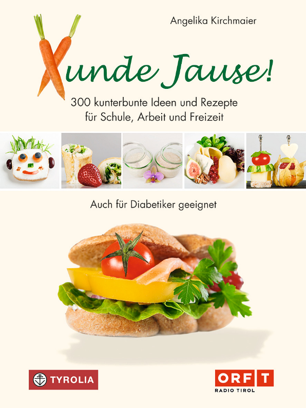In „Xunde Jause“ (Tyrolia Verlag) verrät Angelika Kirchmair 300 gesunde Tipps und einfache Rezepte für Schule, Arbeit und Freizeit. Moderne Erkenntnisse der Ernährungswissenschaft werden mit der Freude am Essen verbunden.