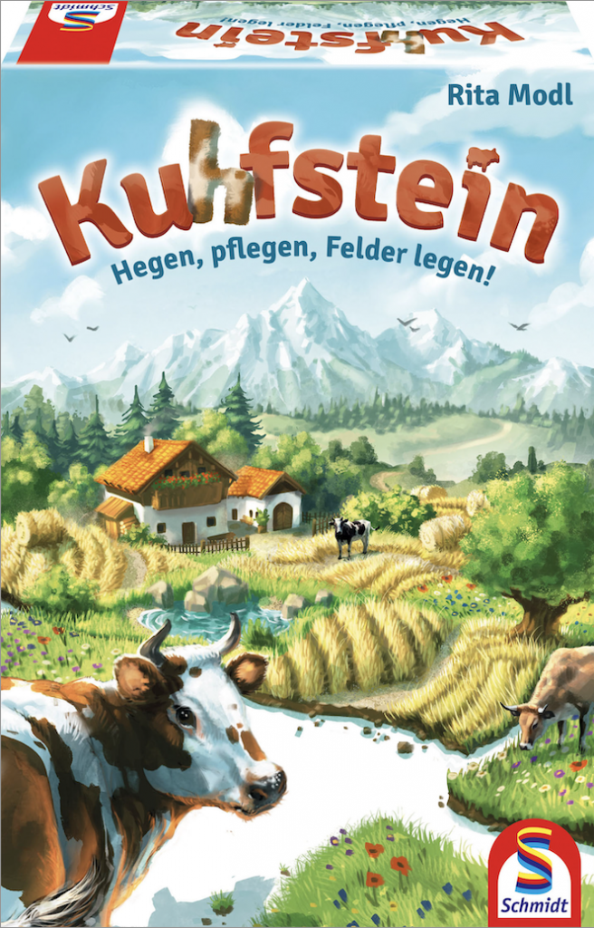 Die Luft riecht nach Wiesenblumen und frischen Heuballen, die Sonne spiegelt sich in den kristallklaren Bergseen – die Kühe in „Kuhfstein“ führen ein glückliches Leben in idyllischer Landschaft. Im neuen Legespiel von Schmidt Spiele® unterstützen die Spielenden Kuhherden, indem sie die schönste Landschaft für sie legen und damit wertvolle Punkte für sich selbst sammeln. Wer die Landschaftsplättchen am schlausten kombiniert und die Kühe am besten setzt, gewinnt das Spiel.