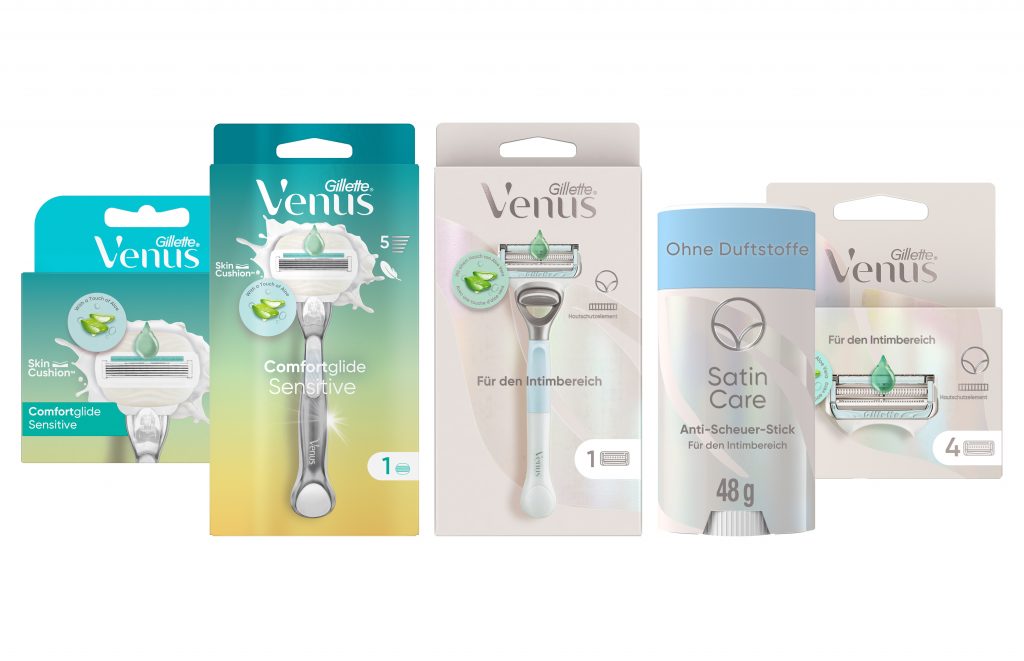 Die Gillette Venus Sensitive Linie bietet die Lösungen gegen Rasierpickel und Rasur bedingte Irritationen. Mit einem Rasierer speziell für den Intimbereich und dem Gillette Venus Comfortglide Sensitive für alle anderen Körperbereiche, ist die Produktlinie darauf ausgelegt, selbst empfindliche Haut die Rasur kaum spüren zu lassen. Dank der neuen Gelkissen und Gleitstreifen mit einem Hauch von Aloe Vera gleitet der Rasierer sanft über die Haut und hinterlässt ein angenehmes Gefühl. Zusätzlich hilft der neue Anti-Scheuer-Stick der Sensitive Linie zur Vorbeugung vom Scheuern zwischen den Oberschenkeln und Rasur bedingten Irritationen.