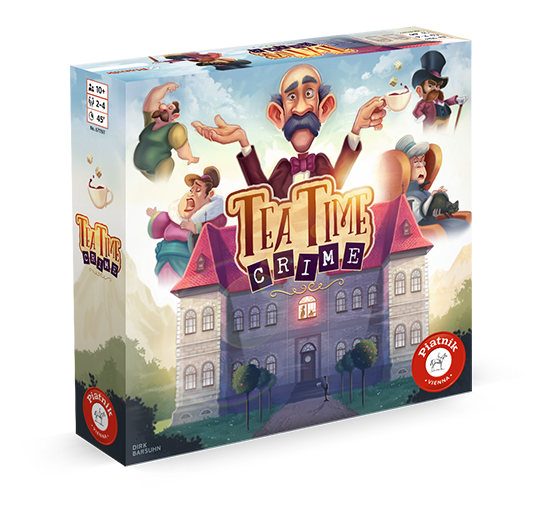 „Very british“ bitten Spieleautor Dirk Barsuhn und der österreichische Spieleverlag Piatnik zur traditionellen Teezeremonie. Doch in dem alten Herrenhaus voller prominenter, reicher Gäste geht etwas nicht mit rechten Dingen zu. Listige Diebe mischen sich unter die Partygäste, auf der Suche nach wertvollen Schmuckstücken. Gut, dass Gastgeber Lord Waldemar in weiser Voraussicht bereits Detektive engagiert hat. So wird aus der klassischen „Tea Time“ ruck zuck „Tea Time Crime“, ein ebenso lustiges wie anspruchsvolles Spiel für die ganze Familie. Eine gut ausgewogene Mischung aus Taktik- und Glückselementen sorgt für hohen Wiederspielreiz.