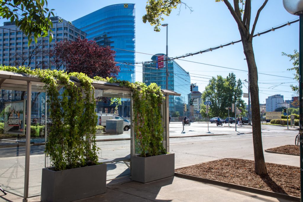 Vorplätze, Fassaden und Dächer von Betriebsgebäuden und Wartehäuschen werden bepflanzt. Das U4-Stationsgebäude Spittelau z.B. wird zur vertikalen Blumenwiese. Außerdem sollen schnell wachsende „Mauerkatzen“ an Haltestellen-Wartehäuschen für Schatten und Abkühlung sorgen. Dafür wurden schon neben und hinter einigen Haltestellen-Wartehäuschen große Pflanztröge aufgestellt, die von der MA42 gepflegt werden.