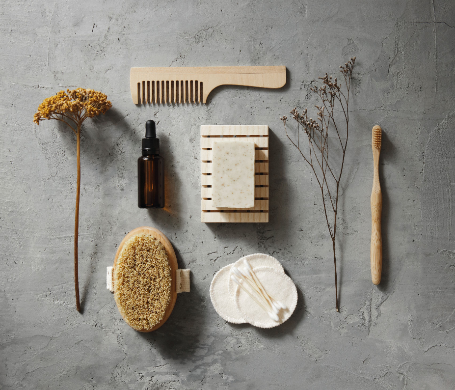 Putz- und Waschmittel werden großteils in Plastikflaschen verkauft. Die beste Lösung wäre es, zu putzen, wie es unsere Großeltern getan haben: Backpulver, Natron und Essig ersetzen die meisten Putzmittel, Waschnüsse oder Kastanien das Waschmittel. Alternativ gibt es Wasch- und Putzmittel in Unverpackt-Läden, dort kann man sie in alte Flaschen oder Schraubgläser abfüllen. Schwämmchen lassen sich durch Holzbürsten mit tierischen oder pflanzlichen Borsten ersetzen, statt dem Wegwerf-Schwammtuch oder dem Mikrofaser-Staubtuch, das ebenfalls aus Kunststoff besteht, eignen sich alte Baumwoll-T-Shirts. Getränkekonzerne produzieren jährlich Milliarden an Plastikflaschen. Diese bestehen in der Regel aus PET, das zwar recyclierbar ist, doch werden hierzulande erst zwei Drittel aller PET-Flaschen recycelt. Dem eigenen Durst lässt sich unterwegs auch mit einer Trinkflasche aus Edelstahl oder Glas und Leitungswasser – gerne mit Geschmack – begegnen. Für den Kaffee gibt es To-Go-Becher aus umweltfreundlicheren Materialien wie etwa Bambus und Mais – am Besten ist sowieso das Mehrweggebinde. Auch im Badezimmer lässt sich ordentlich Plastik sparen. Zahnbürsten und Wattestäbchen aus Holz gibt es bereits in vielen Drogeriemärkten, Wattepads lassen sich durch waschbare Baumwoll-Pads ersetzen. Zahnpasta, Duschgel, Shampoo, Deo und alles, was man sonst so braucht, kann man in fester Form und in Papier verpackt kaufen. Wer will, ersetzt Zahnpasta schlicht durch Kokosöl oder Backpulver. Bei Rasierern müssen nur die Klingen getauscht werden. Auch Binden sind oft komplett aus Kunststoff, lassen sich aber leicht mit waschbaren Baumwollbinden ersetzen. Statt den in Kunststoff einzeln verpackten Tampons kann man auf eine Menstruationstasse umsteigen. Die ist zwar aus Silikon, hält aber jahrelang.