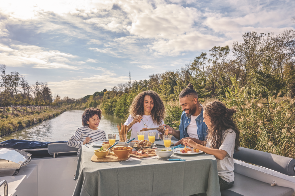 Die Boote von Le Boat bieten Platz für zwei bis zwölf Personen und sind voll ausgestattet: Küche, Bad, gemütliche Schlafkabinen inklusive Bettwäsche und Handtüchern sowie ein Sonnendeck für Frühstück mit Aussicht oder Spieleabende unter Sternen. Fünf Komfortklassen – von funktional bis luxuriös – sorgen dafür, dass jedes Familienbudget und jeder Komfortwunsch erfüllt wird. Sogar der Familienhund darf mit an Bord!