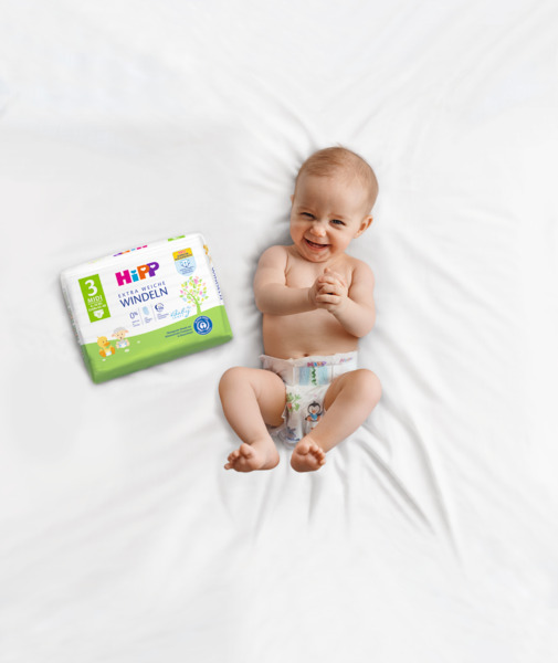 Vor allem in den ersten Lebensjahren ist die Babyhaut sehr sensibel und benötigt besonders weiche und hautfreundliche Windeln. Die HiPP Babysanft Extra Weichen Windeln halten das Baby nicht nur trocken, sondern überzeugen in bewährter HiPP-Qualität mit ihrer einzigartigen Sanftheit. Natürlich sind alle HiPP Windeln frei von Lotion und Parfum, um die sensible Babyhaut zu schützen und die Möglichkeit von Hautreizungen von Anfang an zu