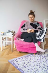 Hauptberuflich ist Beate Mungenast seit Herbst 2015 bei LimeSoda als Digital Art Director tätig, also „Pixelschubse“, wie sie sagt. Sie designt und konzipiert  Webseiten und Onlineshops. Auch im Social-Media-Bereich mischt sie mit. In ihrer Freizeit praktiziert und unterrichtet Beate Ashtanga-Yoga, das sich in der ersten Hälfte des 20. Jahrhunderts als moderne Form des klassischen indischen Yogas etablierte. Mit dem Hygge-Lebensstil beschäftigt sie sich schon seit   Längerem, allein das Ambiente daheim sei noch nicht so ideal dafür: „Meine Wohnung ist noch nicht ganz hyggelig, aber es wird schön langsam.“ In der Wohnung im 15. Wiener Gemeindebezirk stehen aus etwas nostalgischen Gründen und zum Zweck der Gästebeherbergung noch ein Sofa der Mama und die dazugehörigen Sessel herum, „die sind aber eher pompös, ich arbeite daran, sie loszuwerden.“