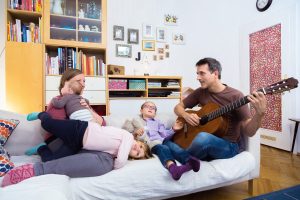 Die täglichen Kuschelstunden könnten in der Familie von Julia E. theoretisch um 16 Uhr beginnen. Um diese Zeit kommt im Idealfall ihr Mann, von Beruf Softwareentwickler, nach Hause in die Wohnung im Zentrum des Grazer Vorstadtbezirks Andritz. Frau E. ist Gymnasiallehrerin für Bildnerische Erziehung, aber aktuell in Karenz – das jüngste Mitglied der Familie zählt erst zwei Monate. Die beiden „großen“ Kinder sind vier und fünf Jahre alt. Soll heißen: „So richtig  kuschelig und gemütlich können es sich mein Mann und ich frühestens ab acht Uhr machen, wenn die Kinder im Bett sind und hoffentlich gut schlafen“, sagt Frau E.. Vorher entspannt man zu fünft am und rund um das Sofa im Wohnzimmer, das die Kinder natürlich als Spielzimmer okkupiert haben.