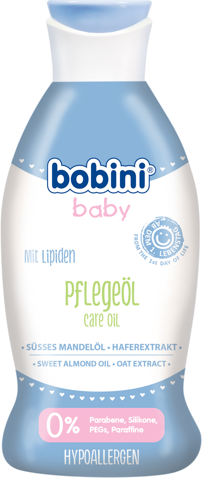 Für ein sanft gepflegtes (Haut-)Gefühl bei Groß und Klein umfasst die Pflegeserie bobini baby insgesamt sieben Produkte. Neben dem „Waschgel für Körper & Haare“ zählen hierzu ein „Pflegeöl“, ein „Schaumbad mit Öl“ sowie drei Cremes für jeden Anspruch zum Programm. Die „Intensiv Pflege Creme“ versorgt dank enthaltenem Mandelöl und Lipiden nicht nur mit Feuchtigkeit, sondern schützt durch Mandelöl und Lipiden vor Austrocknung der Haut. Sheabutter und Emollientia sorgen darüber hinaus für zuverlässigen Schutz vor schädlichen äußeren Einflüssen. Speziell im Hinblick auf den besonders empfindlichen Windelbereich wurde die „Wundschutz Creme“ im Rahmen der bobini baby Linie entwickelt. Die einzigartige hypoallergene Formel schützt den Nachwuchs vor Ausschlägen und Hautirritationen. Haferextrakt und Emollientia wirken sanft und feuchtigkeitsspendend, während Zink Hautreizungen lindert. Dank ihrer reichhaltigen Formel schützt die „Wind & Wetter Creme“ die empfindliche Babyhaut vor Wind und Kälte, während die natürlichen Lipide und das enthaltene Haferextrakt sie pflegen. Ergänzt wird das bobini baby-Sortiment durch die „Feuchttücher Sensitiv“, welche Hautirritationen dank eines pflegenden Balsams – angereichert mit Haferextrakt und Aloe Vera – lindern und die Haut geschmeidig und weich pflegen.