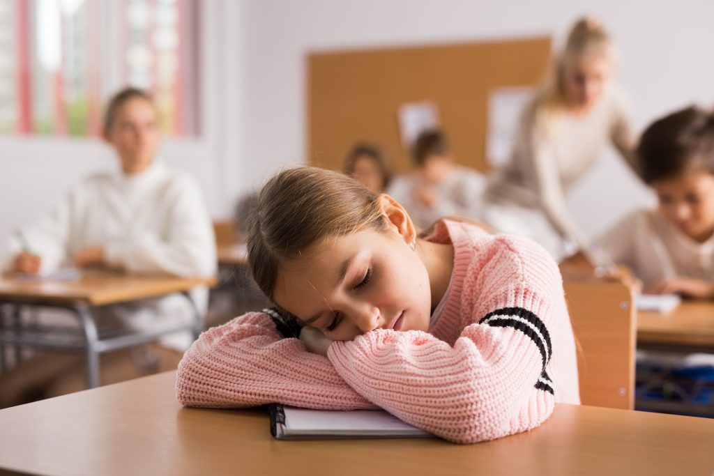 • Kind schläft im Unterricht ein