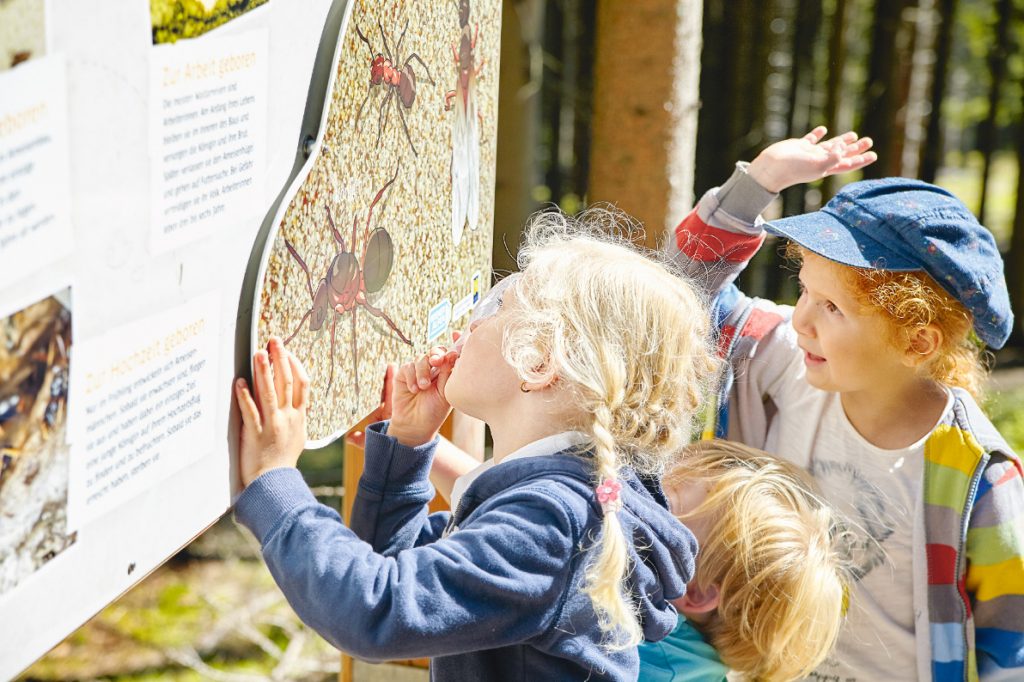Im Bike- und Motorikpark kann man sich nicht nur sportlich betätigen, auf „Coronas Ameisenpfad“ gibt es auch viel zu entdecken und zu lernen: Unter dem Motto „Auf den Spuren der Königin des Waldes“ dreht sich alles um die winzigen Ameisen. Auf 2,5 Kilometern und bei 15 spielerisch lehrreichen Stationen werden dabei das Leben und die Aufgaben der faszinierenden Waldbewohner vermittelt. Am höchstgelegenen Punkt des Erlebnisweges lädt das „Relax-Reich“ mit Speicher- Teich, Sonnenliegen und Bänken zum Ausruhen ein.