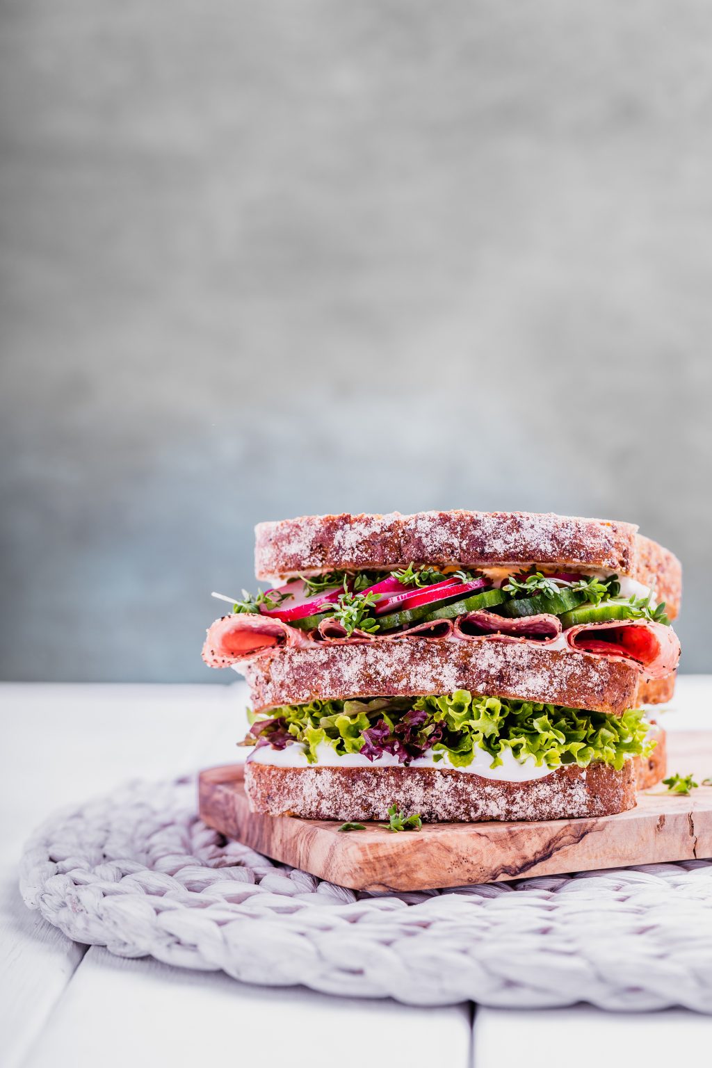 Unterwegs hat man keinen Kühlschrank mit. Leicht verderbliche Zutaten sind daher tabu, z. B. selbstgemachte Mayonnaise und Tiramisu (rohes Ei!) oder Milch. Eiweißreiche Mahlzeiten sind generell nicht lange haltbar. Milchprodukte, Fleisch, Wurst, Tofu, Pilze bilden dann schädliche Abbauprodukte. Hartkäse und Trockenwurst enthalten wenig Wasser und mehr Salz, das macht sie besser haltbar als Extrawurst oder Streichkäse. Dafür sind sie umso aromatischer: Hier reicht schon die halbe Menge, somit bleibt man auch beim Salz- und Fettkonsum im grünen Bereich. Vorsicht bei Rohwürsten: Sie wurden nicht erhitzt und können Krankheitserreger übertragen, die für kleine Kinder möglicherweise