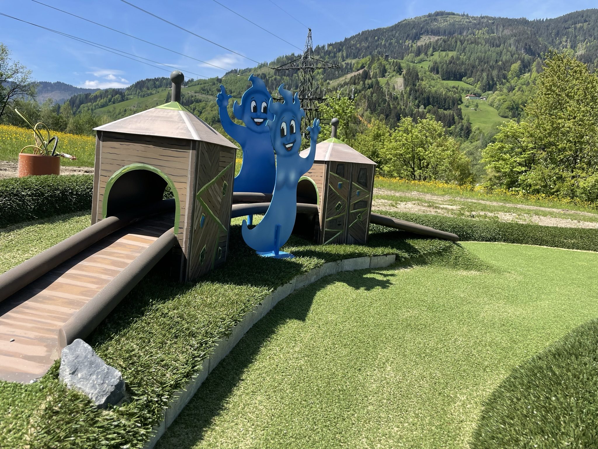 Vorbei sind die Zeiten, in denen Minigolfanlagen aus grauem Beton und lieblosen Dekoelementen bestanden. Die 18-Loch-Minigolfanlage wurde als Abenteuer-Parcours mit regionalen Themen gestaltet, die das Beste aus der Region einfangen.