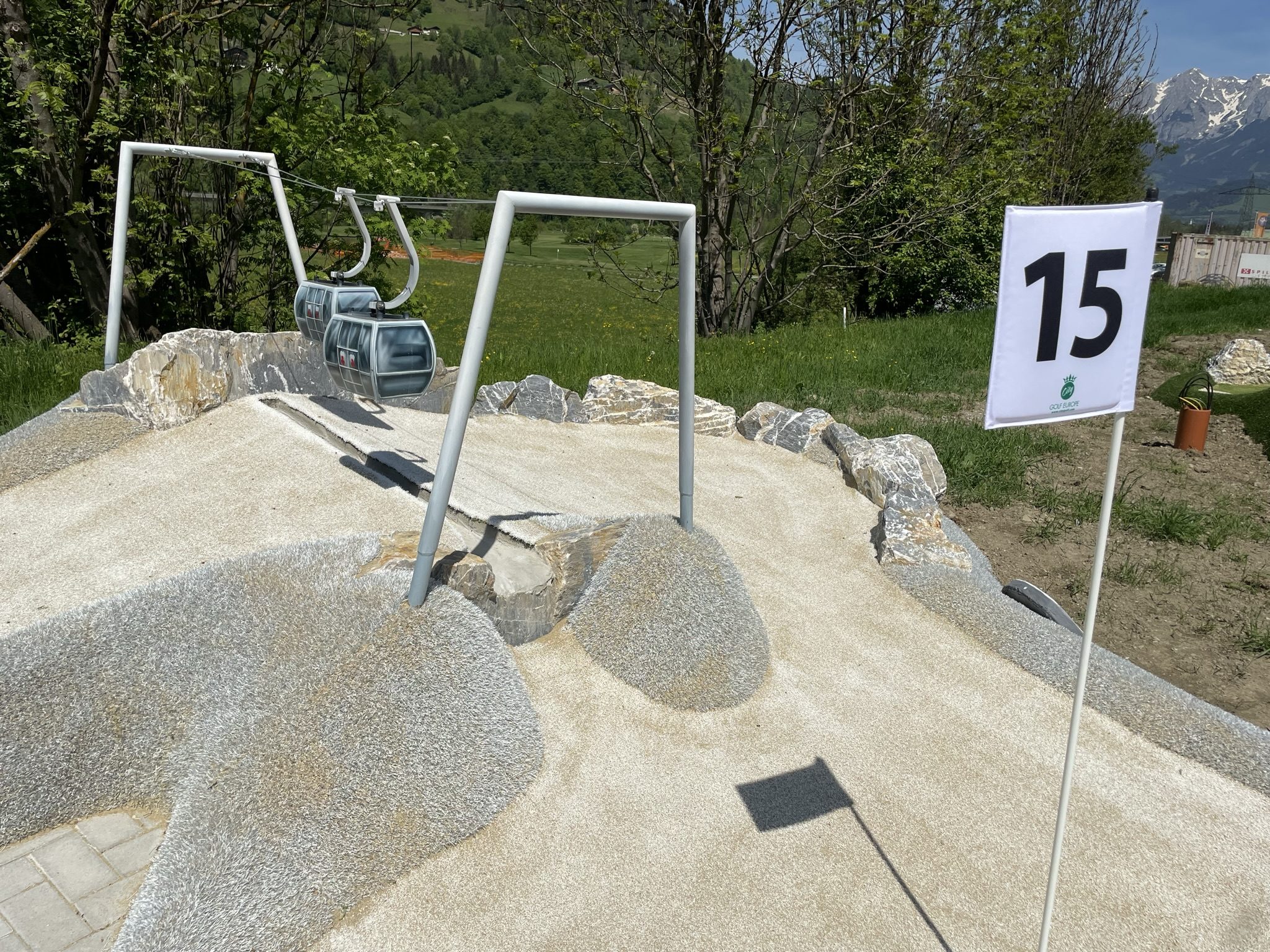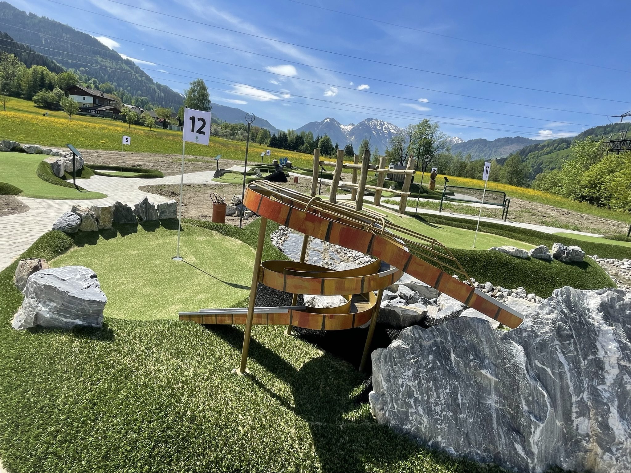 Die neue JO Adventure Minigolfanlage bietet kleinen und großen Minigolfern die Möglichkeit, an einem Ort alle Highlights des Gebiets St. Johann in Salzburg zu entdecken. Auf Hinweistafeln erfahren die Gäste Wissenswertes zu jedem Bauwerk und jeder Sehenswürdigkeit in der Region. Zudem gibt es Hindernisse wie Schrägen, Hügel und Wasserläufe, die das Spiel noch facettenreicher machen – ganz wie auf einem echten Golfplatz.