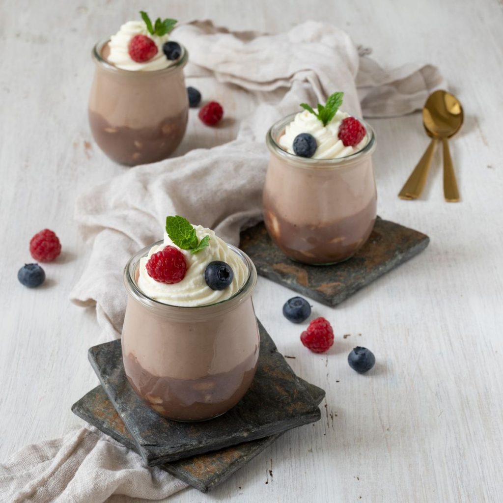 Schichtdessert mit Pudding aus nöm Kakaomilch