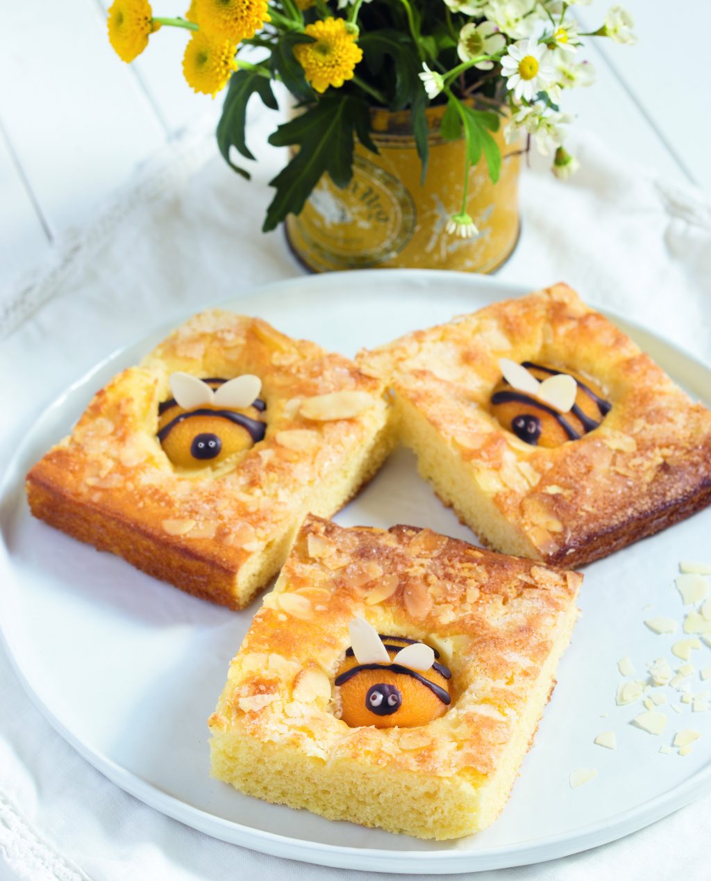 Butterkuchen mit Marillenbienen