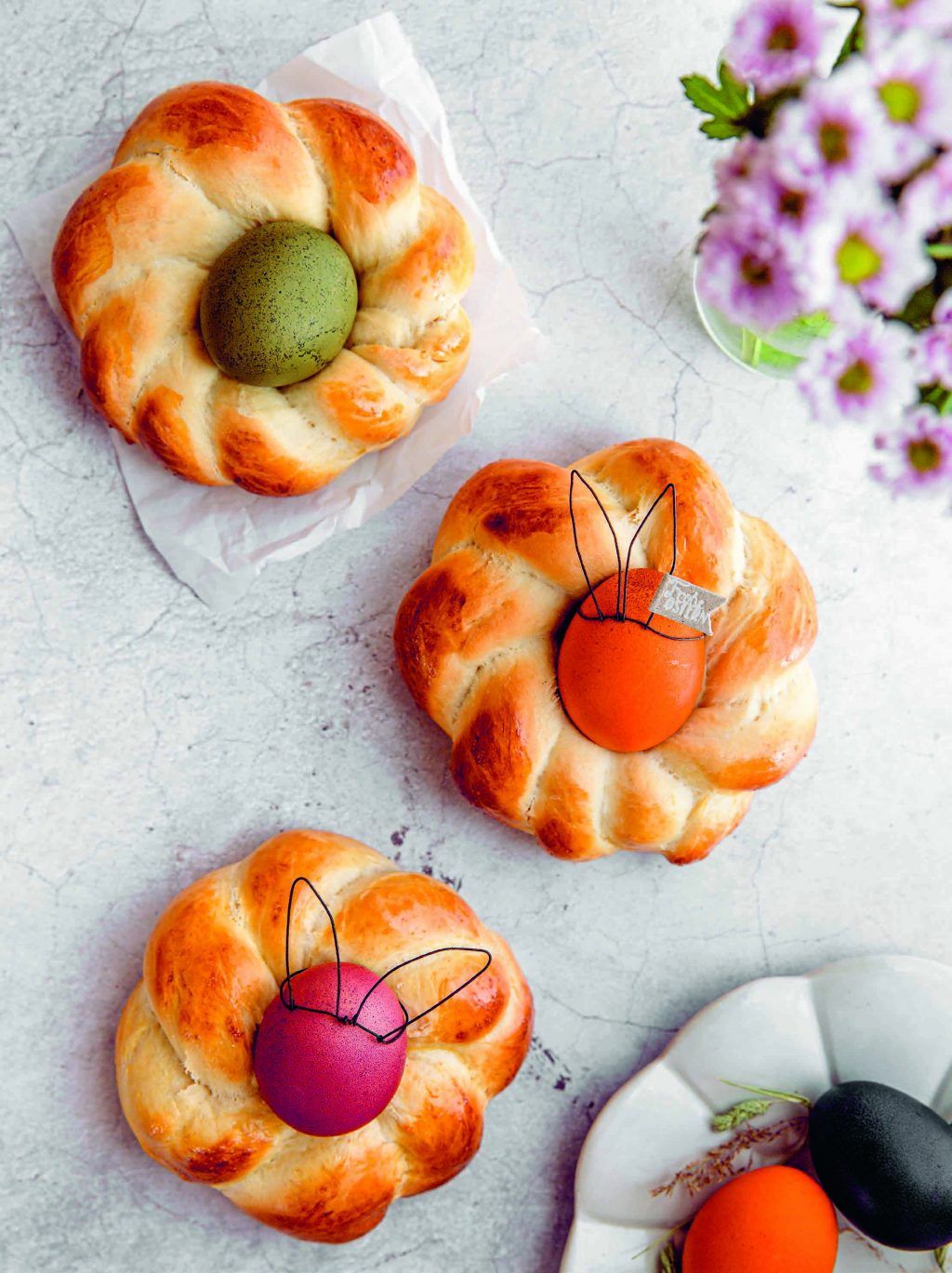 Hübsches Eierversteck: Osternestchen aus Hefeteig