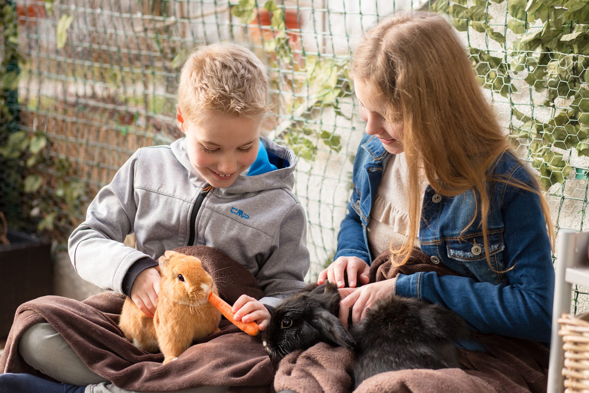 Kaninchen sind zwar vielseitig, entsprechen aber nicht immer dem Klischee des niedlichen, putzigen, von bunten Ostereiern und Frühlingsblümchen umgegebenen Tieres: Sie können friedlich, aber auch wild (Kratzen und Beißen) sein. Für Kleinkinder eignen sie sich daher nicht, erst für ältere Kinder (ab 5–6 Jahre). Vor allem für die introvertierten unter ihnen können Kaninchen wertvolle Sozialpartner sein. Auf jeden Fall bringen die tierischen Freunde ihre Mitmenschen oft zum Lachen oder Staunen. „Langweilig wird es bei der Haltung eines Kaninchenpärchens selten“, weiß Familie Skodler.