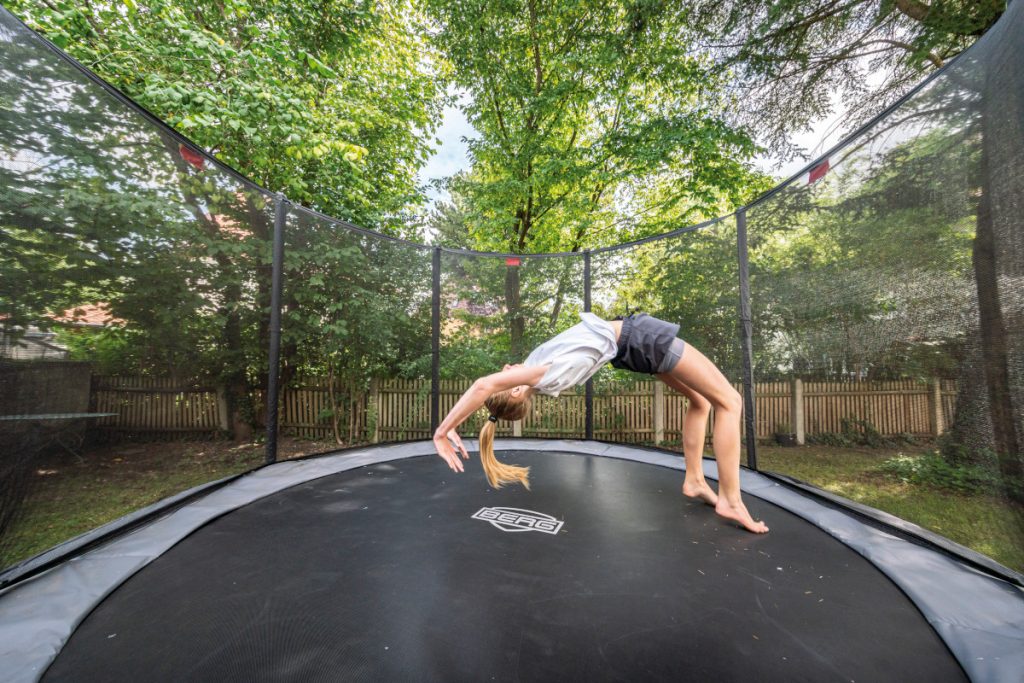 Ist das Einzeltraining beendet, hat Olivia für ihre Leser*innen noch 18 kreative Spiele auf Lager. Eine besondere Herausforderung ist es, Trampolinsprünge mit seinen Freunden synchron einzuüben. Auch Seilspringen macht auf dem Trampolin jede Menge Spaß. Warum nicht zur Abwechslung Basketball, Volleyball oder Fußball darauf spielen. Oder das Trampolin in ein Himmelbett im Freien verwandeln…