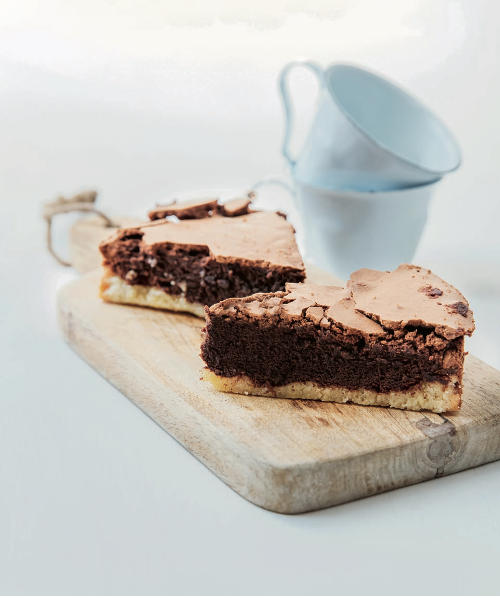 Rührt den Zucker mit den Eigelben und Eiern cremig. Rührt die Schokolade portionsweise unter. Nehmt die Form heraus, entfernt das Backpapier mit den Backerbsen. Gießt die Schokoladenmasse hinein und backt die Tarte weitere 20 Minuten. Nehmt sie dann aus dem Ofen heraus und lasst die Tarte 20 Minuten ruhen, bis die Füllung fest ist.
