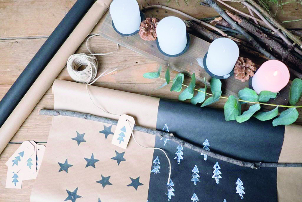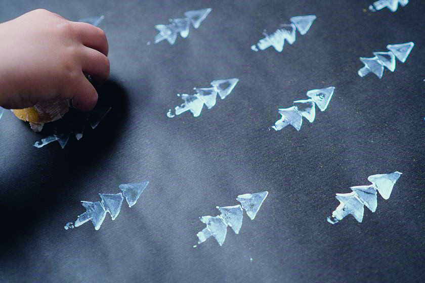4. Stemple das Motiv nach Lust und Laune auf das Packpapier auf.