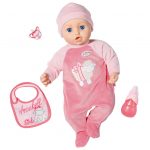 Baby Annabell kann nun mehr: Sie lässt sich wippen, kitzeln und auch in den Schlaf wiegen. Außerdem macht sie mehr Geräusche. Neben Lachen werden die Puppenmamas und -papas ab sofort von einem Babypups überrascht.