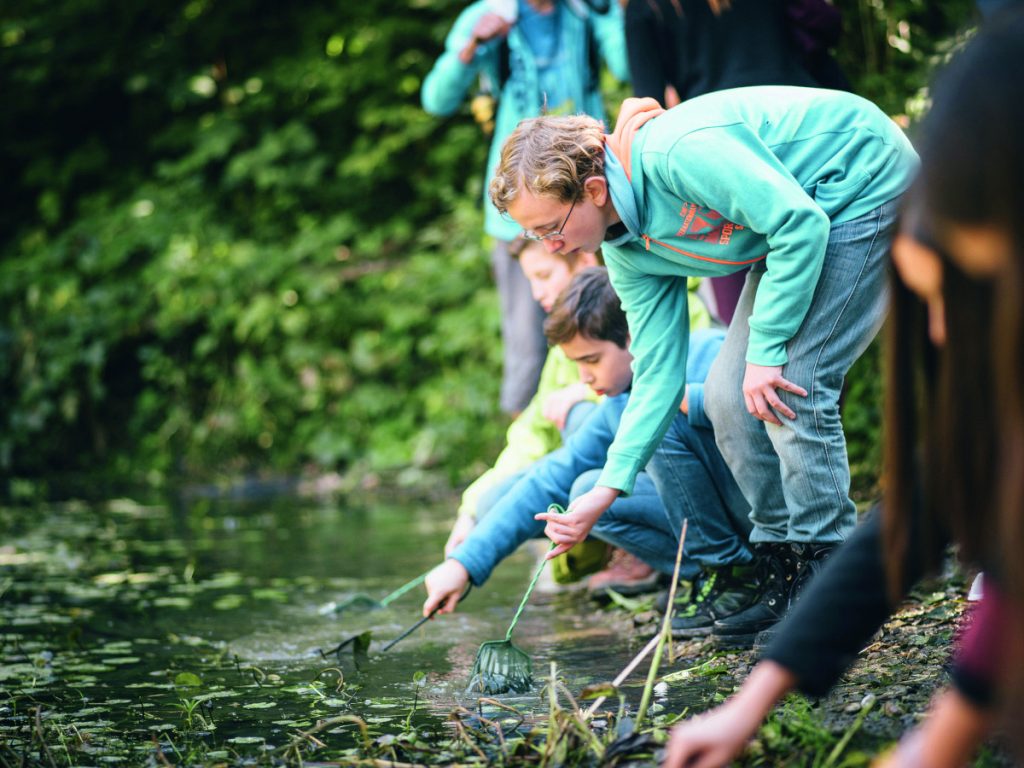 Barfuß über den Waldboden laufen, die Füße in den kalten Bach strecken oder Bachflohkrebse und anderes Getier im Wasser beobachten: Bei Rangerführungen erleben Kinder Natur hautnah.