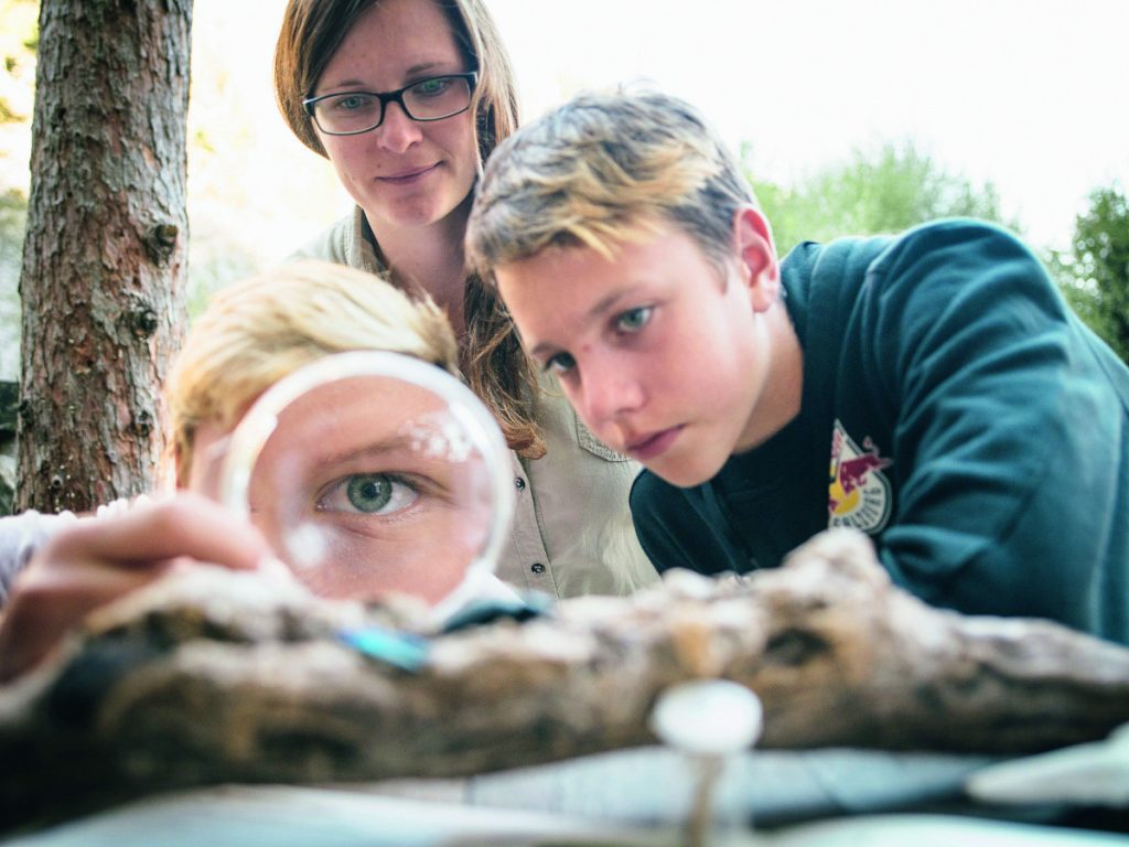Interessantes gibt es für die Kinder trotzdem viel zu entdecken, selbst dort, wo sie es nicht erwarten. „Viele können mit Pflanzen zunächst einmal nicht so viel anfangen. Wenn ich ihnen aber erzähle, wie sich manche Pflanzen mit den Wurzeln im Schotterfeld festklammern, um zu überleben oder wie sie Insekten anlocken können, merken sie, dass auch Pflanzen etwas ganz Tolles sind. Wichtig ist, die Informationen in spannende Geschichten zu verpacken.“ Neben vielen Infos bieten die von Rangern angeleiteten Führungen den Kindern auch die Möglichkeit, sich alleine in der Natur zu beschäftigen. „Wir geben ihnen zum Beispiel auf unserem Waldspielgelände viel Zeit, in der sie aus Ästen oder Moos einen Unterschlupf oder im Sand am Wasser Landschaften aus Bergen und Tälern bauen.“ Dreckig oder nass werden? Kein Problem. Dafür haben die Kinder Reservekleidung mit. Doris Ramschek ist zufrieden, wenn sie Kinder und Jugendliche für die Flora und Fauna im Nationalpark begeistern kann – so wie sie selbst von der Natur begeistert ist. Noch mehr freut es sie, wenn die Führungen sich auch langfristig auf die Einstellung zu Natur und Umwelt der jungen Menschen auswirken. „Im Nationalpark stehen Tiere und Pflanzen unter strengem Schutz. Unser Ziel ist es, das Verständnis für die Umwelt und den Umweltschutz auch außerhalb des Nationalparks zu schärfen.“