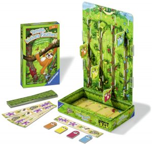 Wessen Faultier schafft es als Erstes in die Hängematte in den Baumwipfeln? Ein Wettlaufspiel für Kinder ab 4 Jahren für 2 – 4 Mitspieler.