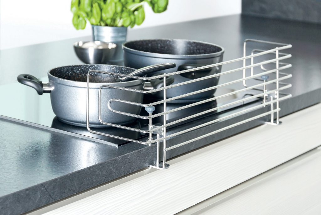 Um möglichst viel Stauraum zu schaffen und eine optimale Anordnung von Küchengeräten und Schränken zu erzielen, ist die Planung durch einen Profi ratsam. Je mehr Küchenutensilien vorhanden sind, desto mehr Schränke oder Laden sollten eingeplant werden. Das erleichtert die Organisation und schafft Ordnung. Hochschränke bis zur Decke nutzen dabei die Raumhöhe komplett aus. Mit Schwenkauszügen in den Ecken von L- oder U-förmigen Küchen lassen sich Töpfe oder Pfannen optimal verstauen. In engen oder hohen Nischen sind Apothekerschränke absolute Stauraumwunder.