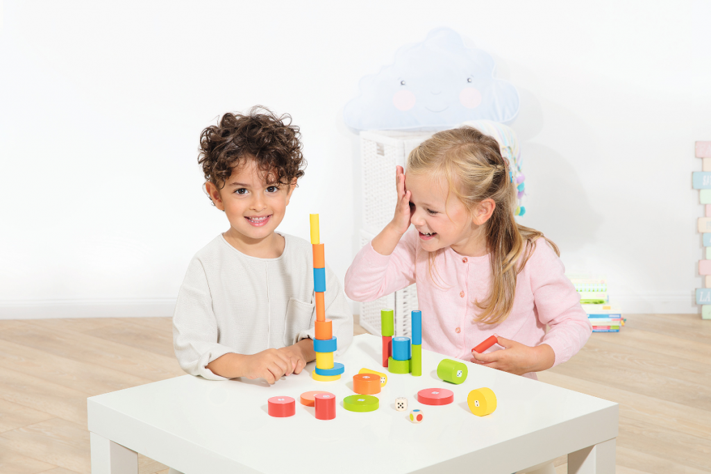 Torreta ist ein lustiges Gesellschaftsspiel, das nicht viel Platz braucht und je nach Alter der Kinder im Schwierigkeitsgrad angepasst werden kann. Kinder lernen hier spielerisch Farben und Zahlen und trainieren die Feinmotorik. Mit älteren Kindern können die Zahlen und Farben auch in einer Fremdsprache geübt werden. Die bunten Spielsteine können auch für andere lustige Spiele verwendet werden, wie zum Beispiel „wer baut den höchsten Turm in einer Minute“ oder Sortierspiele nach Farben, Zahlen oder Größe.