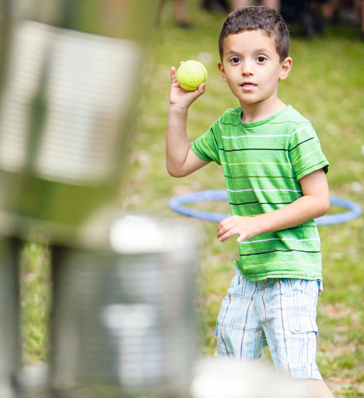 Beim Dosenwerfen müssen Kinder versuchen, Dosen mit Bällen zu treffen. Um den Schwierigkeitsgrad für ältere Kinder zu erhöhen, kann vorher die Reihenfolge festgelegt werden, in der die Dosen getroffen werden müssen. Dazu kann man auch Zahlen oder Symbole auf die Dosen malen.