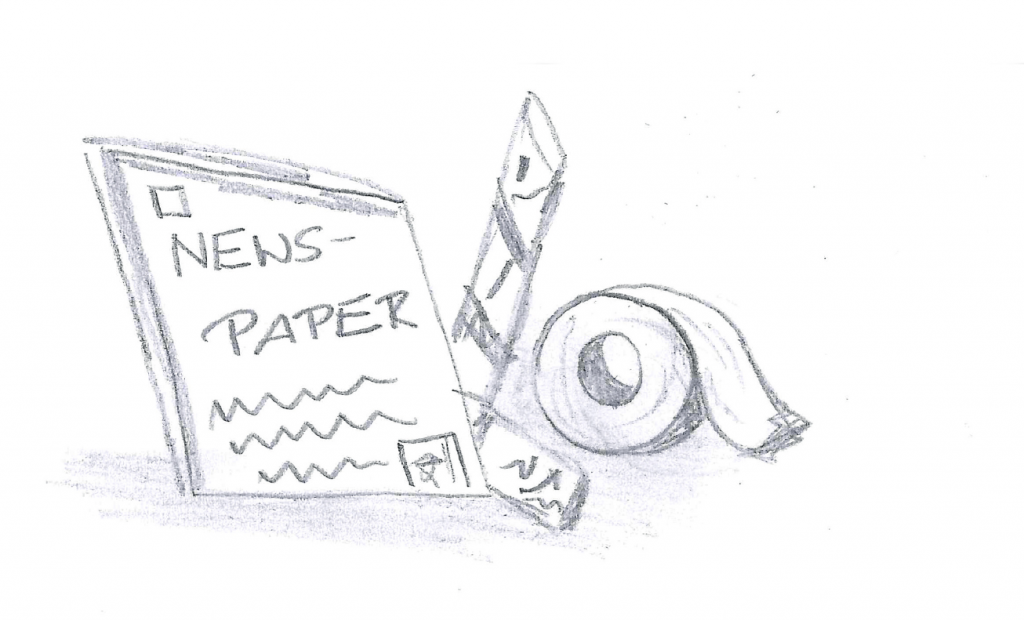 Material: Zeitungen und Malerkrepp, Stühle, Tische oder ähnliches als Tore